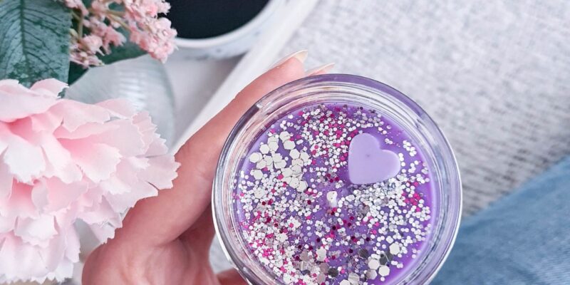 Zdobení: barevné třpytky, srdíčko z vosku